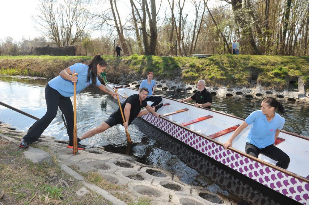 Tette ezt úgy Heni, hogy korábban sosem vett kezébe lapátot, és mint megtudta, a mentora, Rómeó sem diadalmaskodott még ebben a sportágban. A bemelegítés és néhány szakszerű utasítás után már indultak is a hévízi patakra, ahol tavirózsák között várta őket a sárkányhajó.