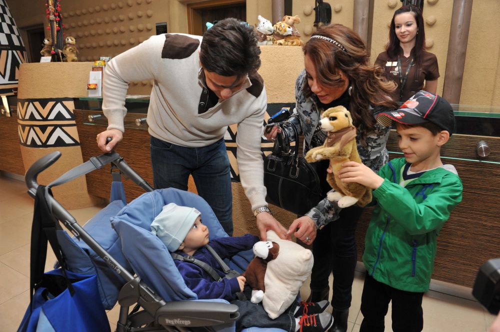 Természetesen a szülinapos köszöntése sem maradhatott el. Volt afrikai torta, gyertya, zene és szurikáta is. Bizsu, a szálloda kabala szurikátája egy tortával érkezett az ebédhez. A kis Adrián kikerekedett szemekkel figyelte. A gyertyát a szülőkkel közösen fújták el.